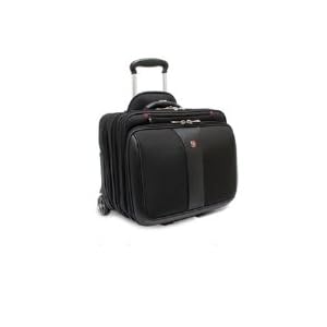 The Patriot Wheeled Computer Case from Swiss Gear lets you organize for the day’s chores easily fitting most 17 inch laptops. For easy moving around it features chrome accented 3 wheels and chrome accented recessed carrying handle. It incorporates an organizer compartment for pens, business cards, phone and more, a spacious overnight compartment that fits clothes for the next day and a Fan-file compartment. The zippered compartment stores trolley handle when not in use thus saving space.